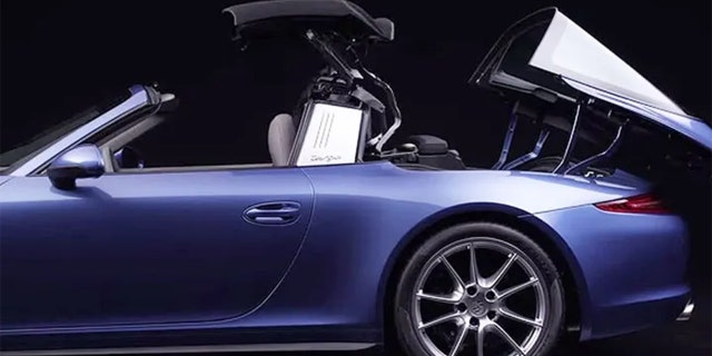 The trunk lid is double-jointed, so it can tilt toward the rear and accept the roof section as it passes over the fixed supportive roll-hoop behind the rear seats.
