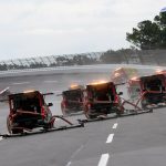 After slamming on the brakes, the car can be seen taking a big jolt as it transitions from the smooth 2.3-mile runway section to a rougher run-off area at 140 mph.